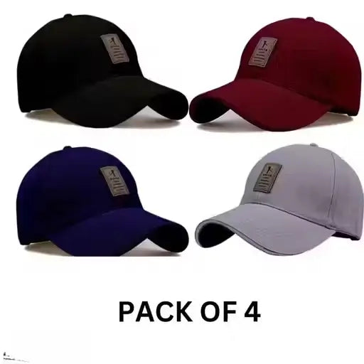 Product Title:Trendy Men’s Multi-Color Cotton Baseball Cap – Pack of 4 Stylish...